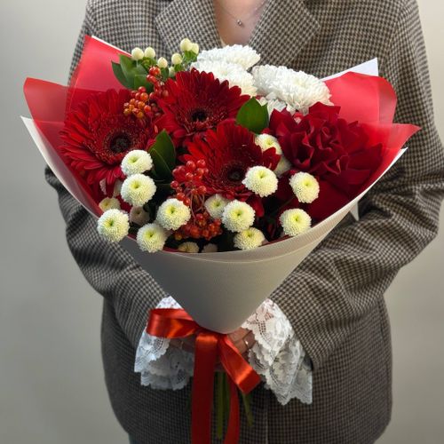 В случае отсутствия пожеланий флорист подбирает состав на свой выбор. Оформляя заказ на данный товар, Вы соглашаетесь с условиями сборки букета на выбор флориста, в случае отсутствия пожеланий.