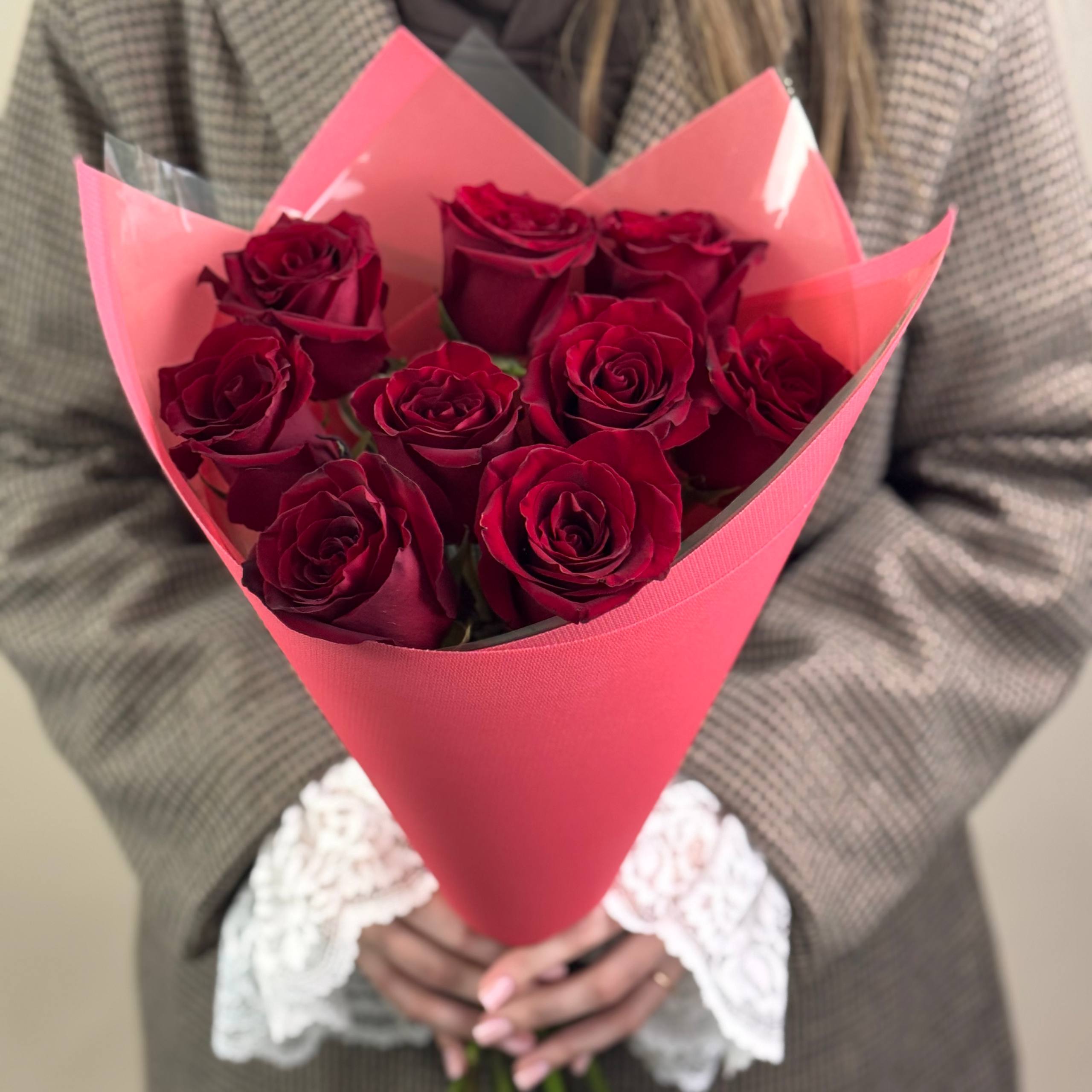 Букет будет выполнен из бордовых роз.