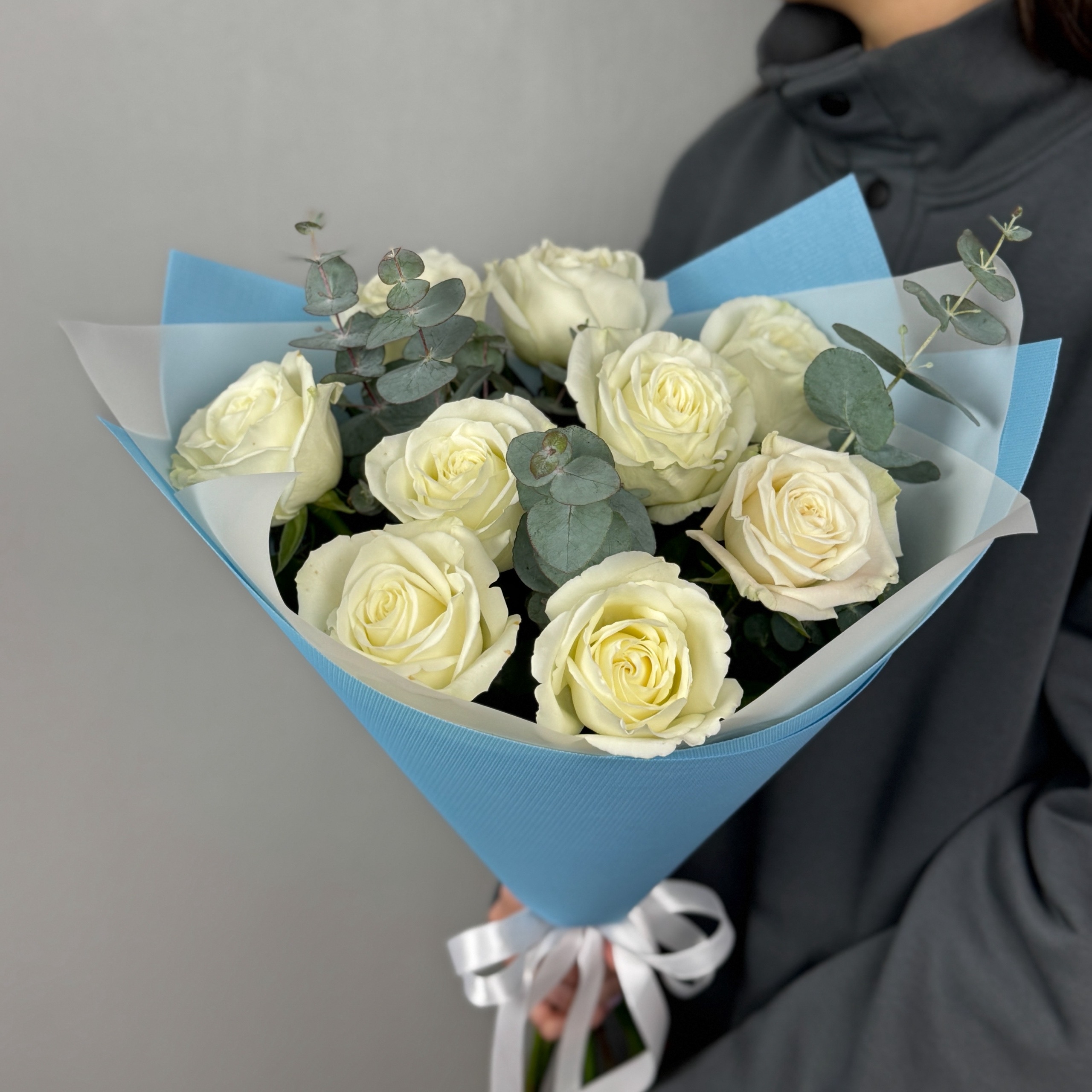 Обращаем внимание! Мы сохраним настроение и цветовую гамму, но 100% повторение невозможно. Сорт, оттенок цветов, вид декоративной зелени и декор  может отличаться от представленного на фото.