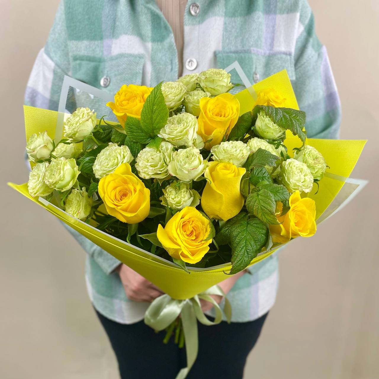 С16025 БУКЕТ ИЗ КУСТОВЫХ И ОДНОГОЛОВЫХ РОЗ