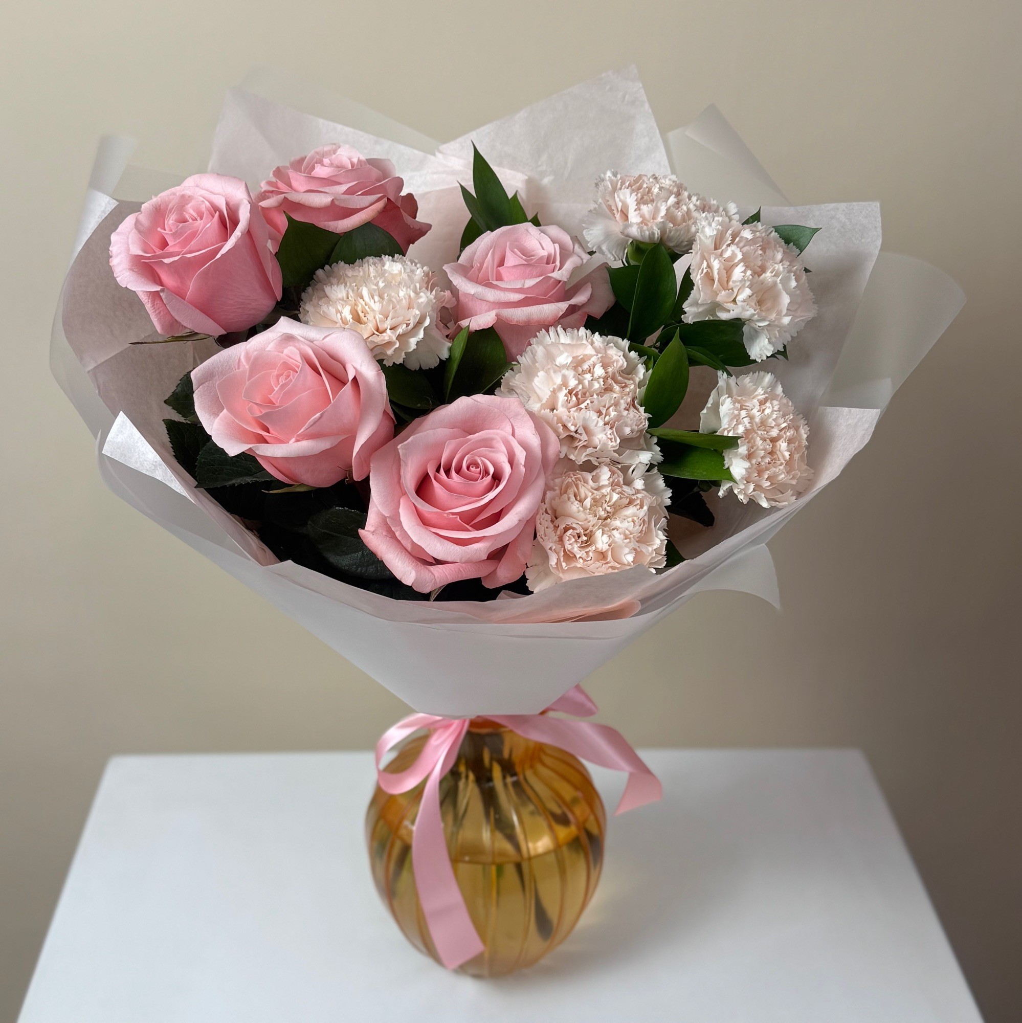 С18124 БУКЕТ ИЗ РОЗ И ДИАНТУСОВ