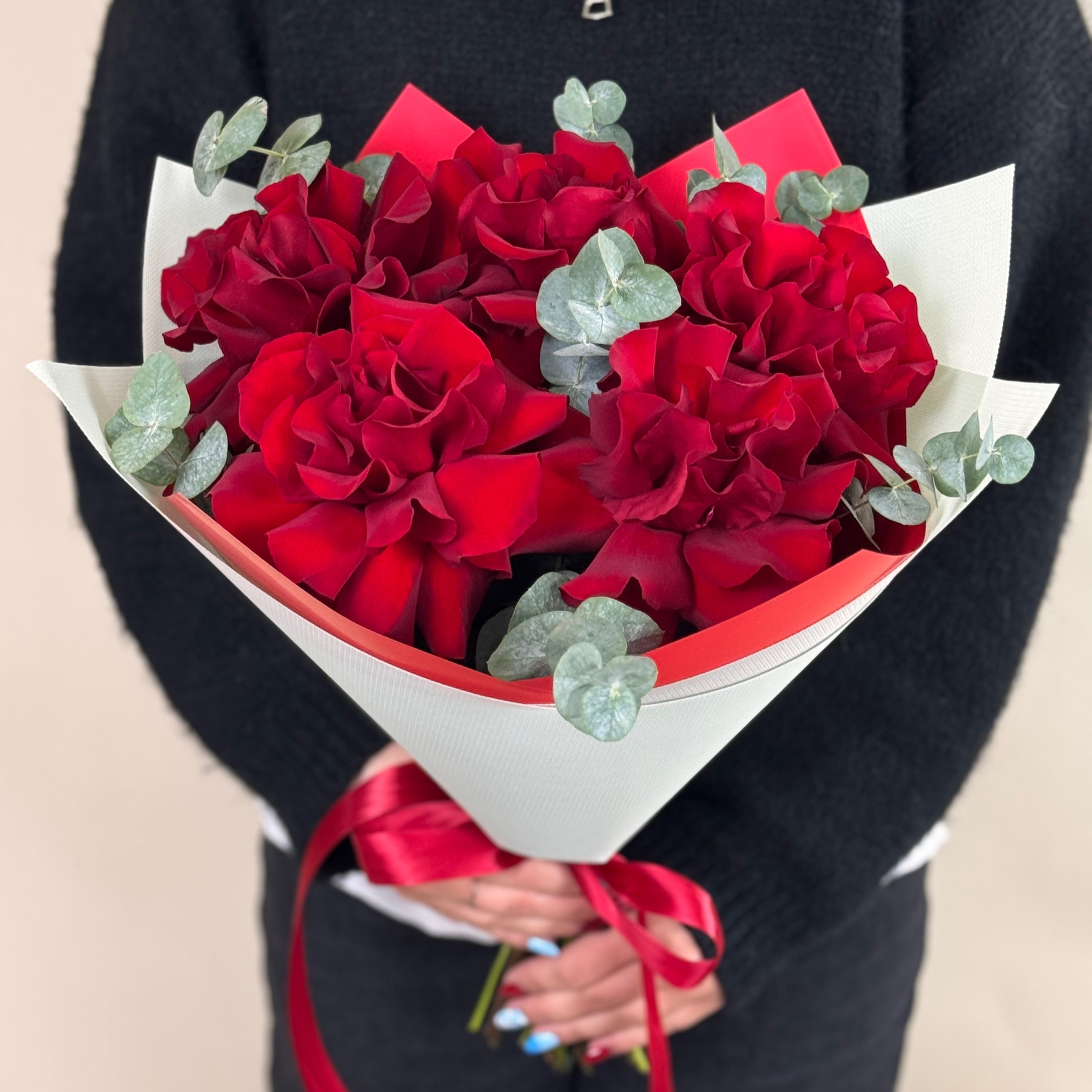 С18280 МОНОБУКЕТ ИЗ 5 ФРАНЦУЗСКИХ РОЗ С ЗЕЛЕНЬЮ