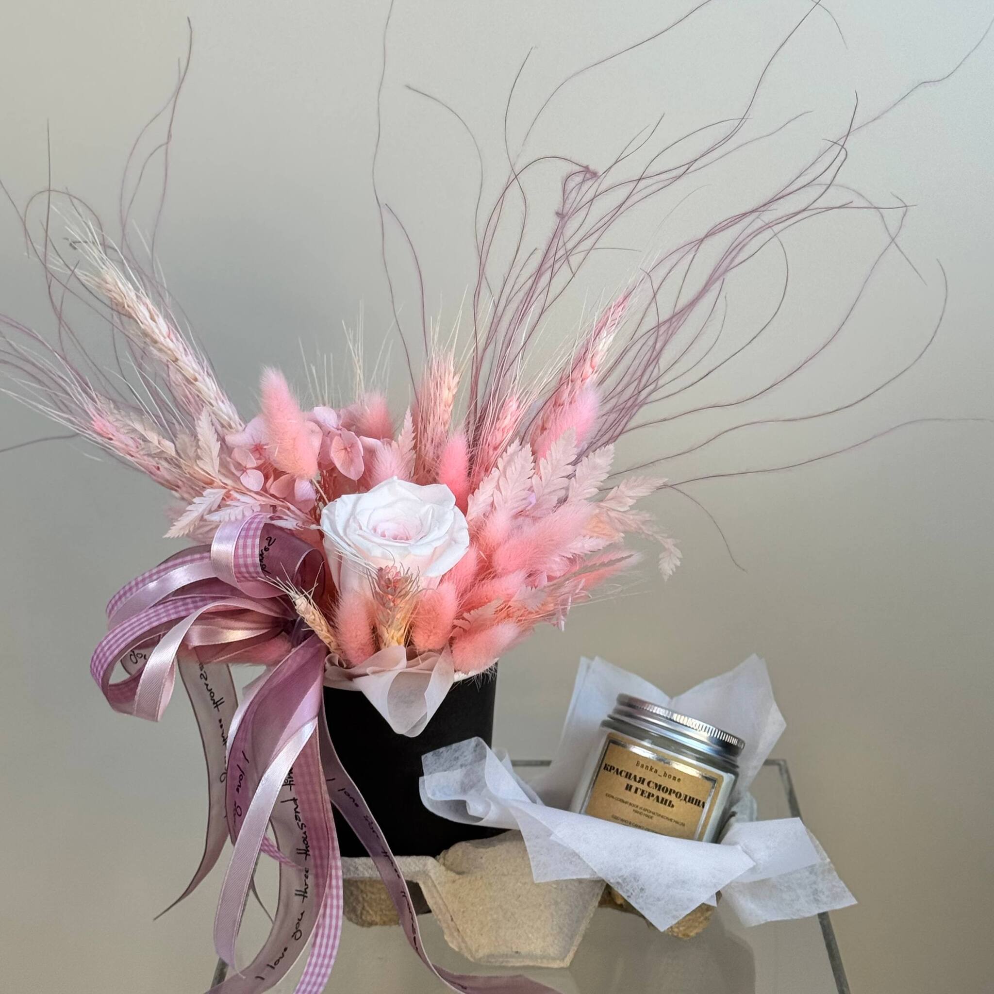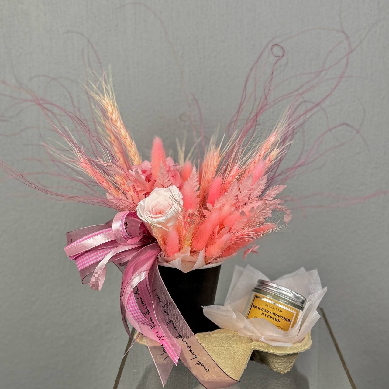 СТАКАНЧИК СО СУХОЦВЕТАМИ И СВЕЧКОЙ В КОРАЛЛОВОЙ ГАММЕ