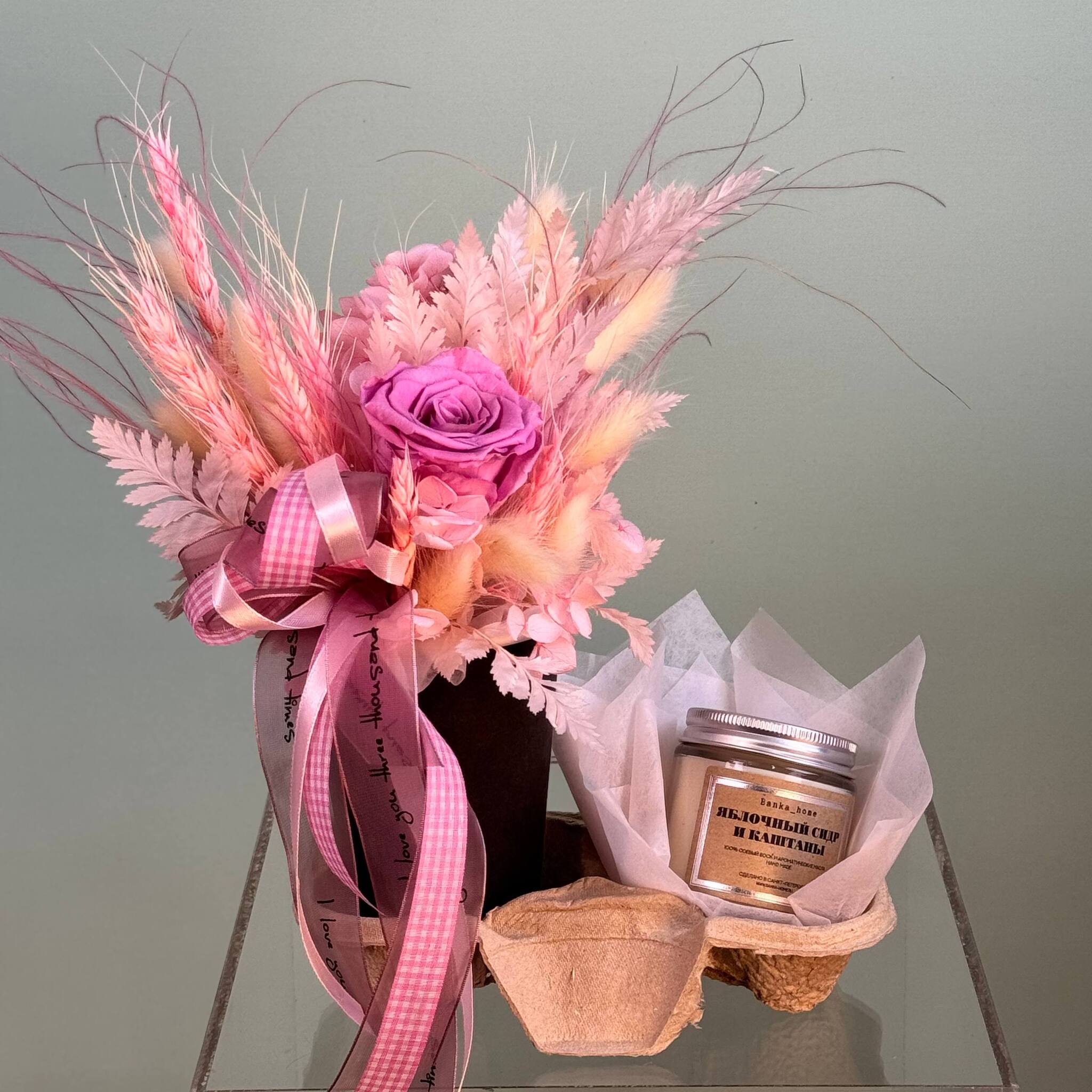СТАКАНЧИК СО СУХОЦВЕТАМИ И СВЕЧКОЙ В РОЗОВОЙ ГАММЕ